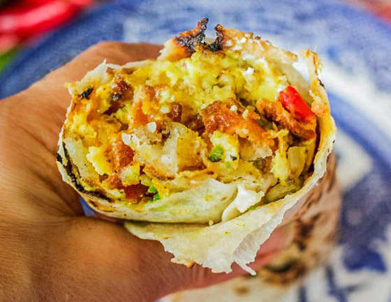 5. لفوا خبز التورتيلا على شكل رول، وقدموا بوريتو البيض ساخناً.