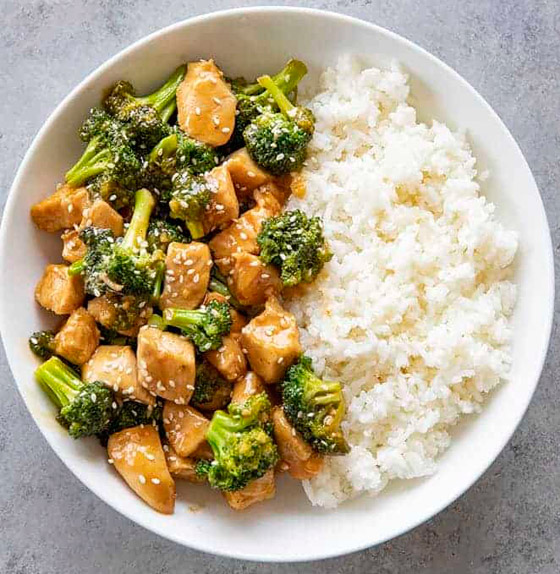 8. قدموه ساخناً مع رشة سمسم إلى جانب الأرز الأبيض حسب الرغبة.