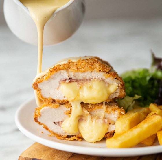 دجاج كوردن بلو مثل المطاعم... بأسهل طريقة تعلموا طريقة تحضير دجاج كوردون بلو المقرمش، من ألذ طبخات صدور الدجاج الرائعة، جربوا طريقتنا وقدموها ساخنة وبالصحة والعافية. وقت الطهي: 60 دقيقة.. يكفي ل: 4 أشخاص.