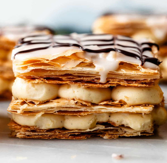 حلى ميل فاي الفرنسي بأسهل طريقة... هذه الطبقات المقرمشة التي تعود إلى عصر ماري أنطوانيت مثيرة للإعجاب، وما زال الطهاة في المطاعم المشاركة في مهرجان كان يعدونها لضيوفهم القادمين من حول العالم، فمحتويات هذه الوصفة بسيطة من الحلويات الفرنسية، المهم دقة مقاديرها، ويمكن تزيينها بالفاكهة أو المكسرات التي ترغبون بها. وقت الطهي: 60 دقيقة.. يكفي ل: 5 أشخاص.