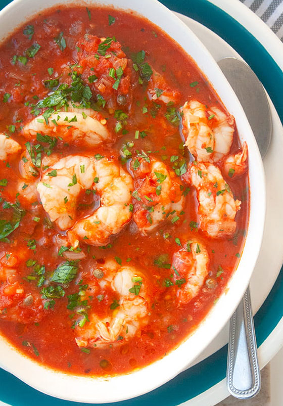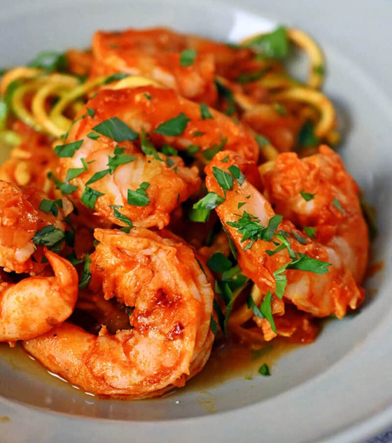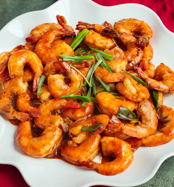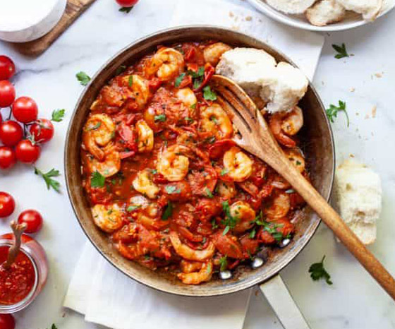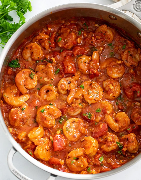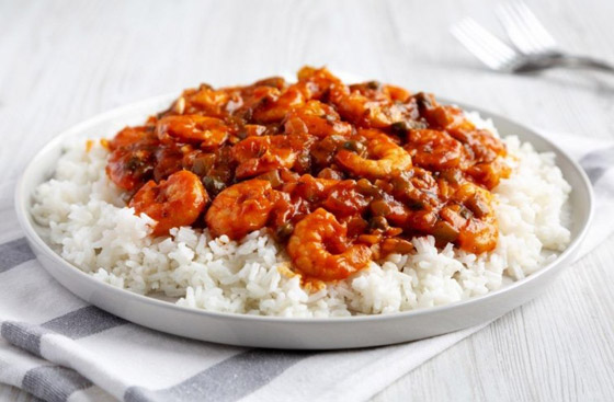5. قدموا الروبيان بصلصة الطماطم الحارة ساخناً إلى جانب الأرز.