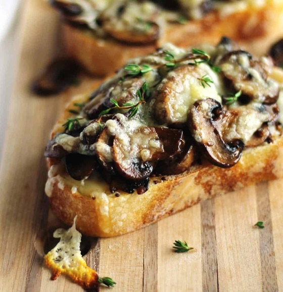 - شوي الخبز والفطر لمدة 3-5 دقائق، مع قلب الخبز في المنتصف، حتى يصبح الجزء العلوي ذهبي اللون ويتحمص الخبز.