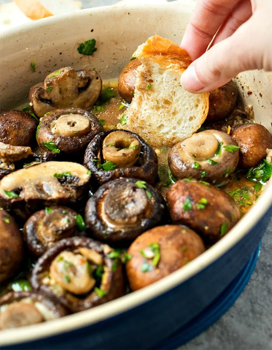* طريقة تحضير الفطر المخبوز مع الثوم والصلصة: