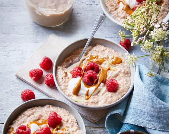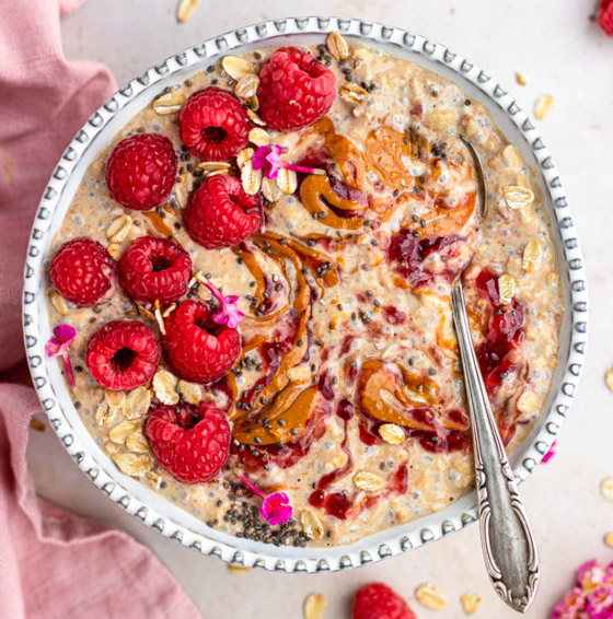 4- دهن الشوفان وتغطيته بزبدة الفول السوداني والتوت.