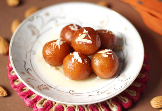 10. اسكبوا حلوى غولاب جامون الهندية في طبق التقديم، وقدموه.
