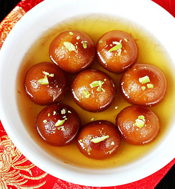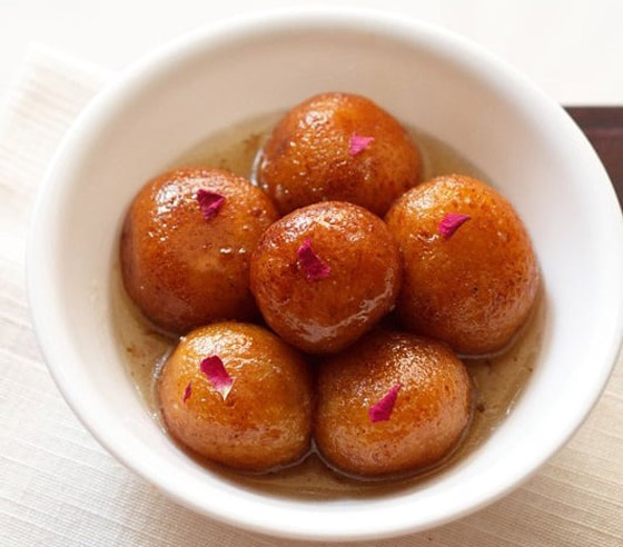 حلوى غولاب جامون الهندية... تعد حلوى الغولاب جامون من الحلويات الهندية السهلة واللذيذة التي يمكن تحضيرها بمكونات متوفرة وبسيطة في كل منزل، فهي عبارة عن كرات عجينة من الحليب والسميد والطحين والزبدة وغيرها من المكونات، وتقلى الحلوى في الزيت وتوضع في القطر وتقدم بدرجة حرارة الغرفة، إليكم الطريقة. وقت الطهي: 60 دقيقة.. يكفي ل: 4 أشخاص.