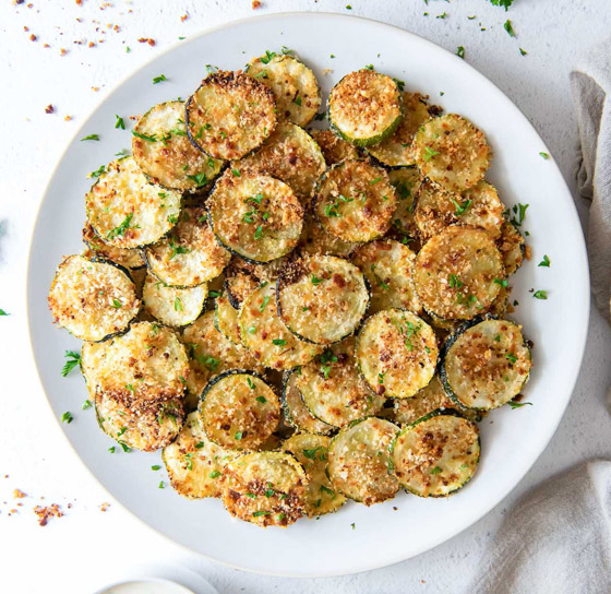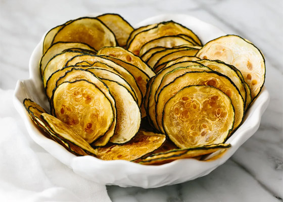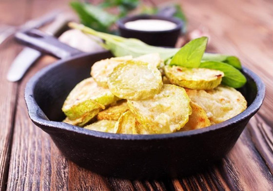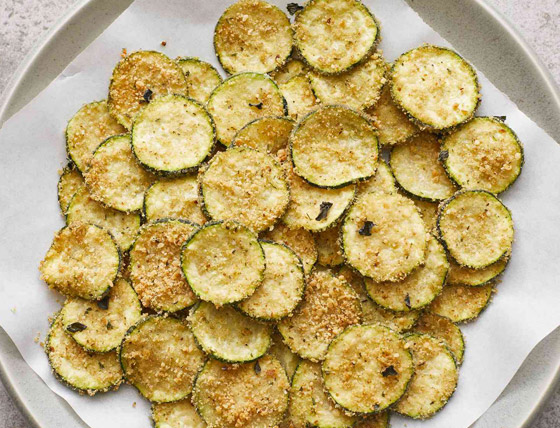 4. ضعوا شيبس الكوسا في طبق التقديم، وقدموه.