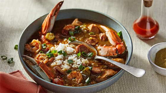 تمتزج الثقافات والنكهات في هذا الحساء الشهي، الذي يتأثر بمأكولات غرب إفريقيا وشعب تشوكتاو الأصلي والمطبخ الفرنسي. وتُعدّ الإصدارات المصنوعة من المأكولات البحرية، والدجاج، والنقانق من بين أكثر الأطباق شعبية اليوم، ولكن هناك طرق لا حصر لها لتحضير هذا الطبق الجنوبي المميز.