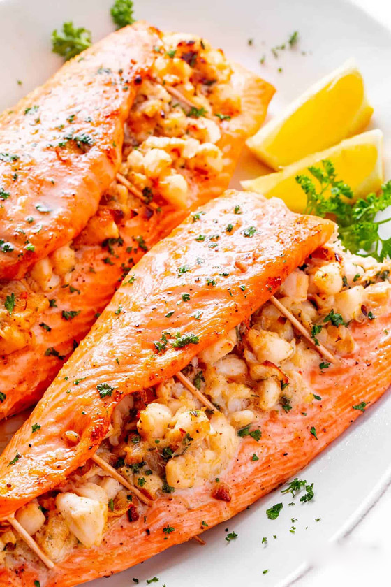 * طريقة تحضير وصفة سمك السلمون المحشو بالحمضيات: