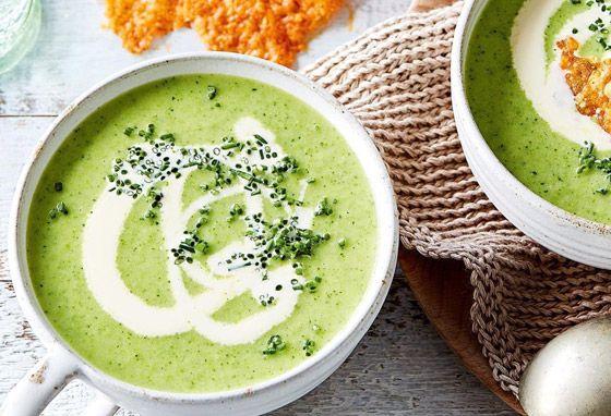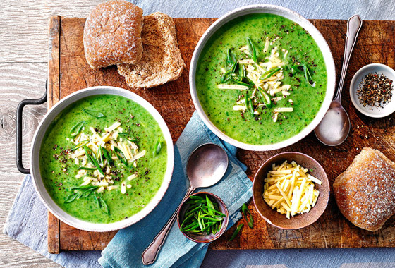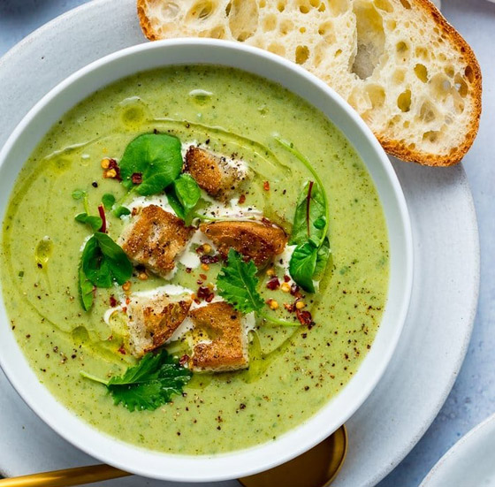 لا يمكن حقاً التغلّب على طبق من الحساء الساخن في يوم بارد. تحتوي وصفة حساء البروكلي الدافئ هذه على خضروات خضراء طازجة، بما في ذلك السبانخ الصغيرة والبصل الأخضر، بالإضافة إلى الجبن المذاب للحصول على لمسة نهائية كريمية. ويمكن تقديمها مع رشة سخية من الجبن الشيدر الإضافي ولفائف الخبز الدافئة للتغميس.