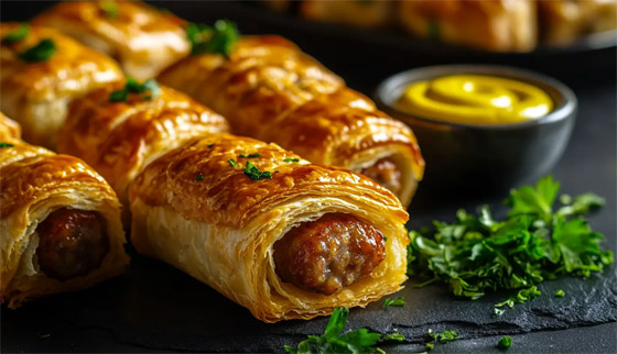 لفائف النقانق... وجبة خفيفة ومقرمشة يحبها الأطفال والكبار على حدٍ سواء، سهلة التحضير وسريعة، حضروا أطيب وصفات عجينة البف باستري المقرمشة، وقدموها كطبق سريع ولذيذ على سفرة الفطور أو العشاء. وقت الطهي: 60 دقيقة.. يكفي ل: 6 أشخاص.