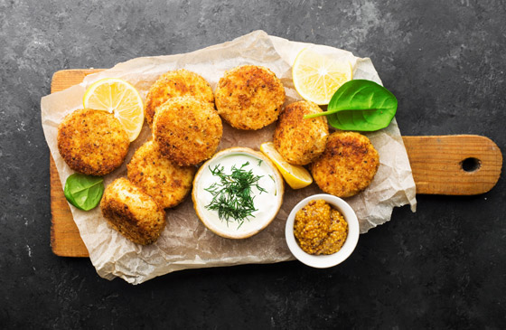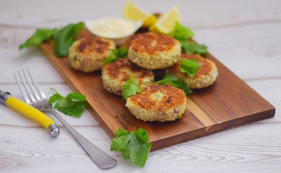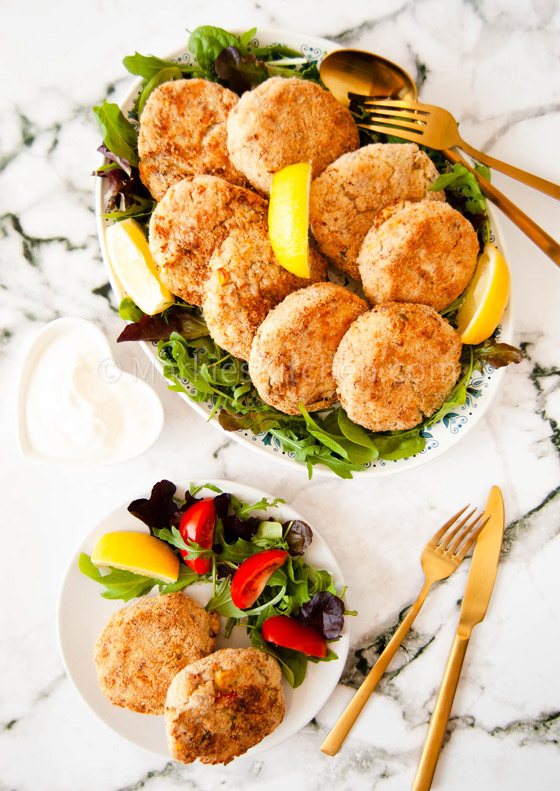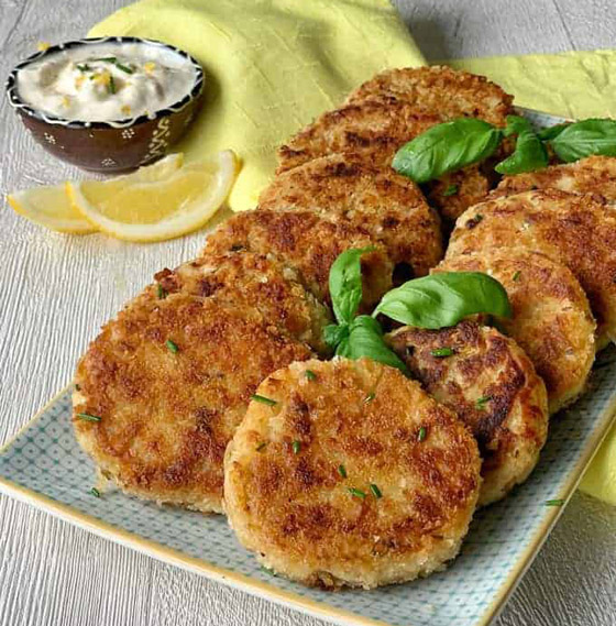 8. قدموا فطائر التونة ساخنة مع صلصة التارتار أو صلصة السيزر، أو رشوا عليها بعض جبن البارميزان. كما يمكن تقديمها كطبق جانبي مع الأرز أو الكينوا لمزيد من التنوع في الوجبة.