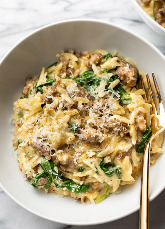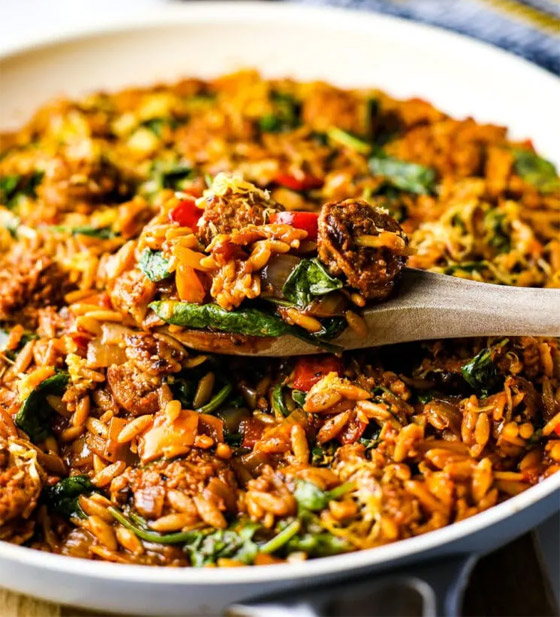 أورزوتو بالنقانق... وجبة لجميع أفراد العائلة.. الجميع يحبّ هذه الوصفة السريعة والسّهلة المصنوعة من الشعير والخضار المخفيّة والنقانق والجبن الكريمي.