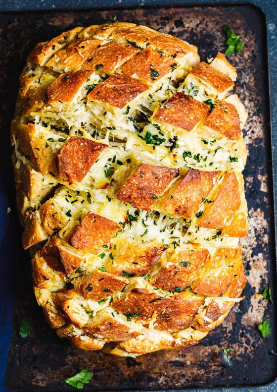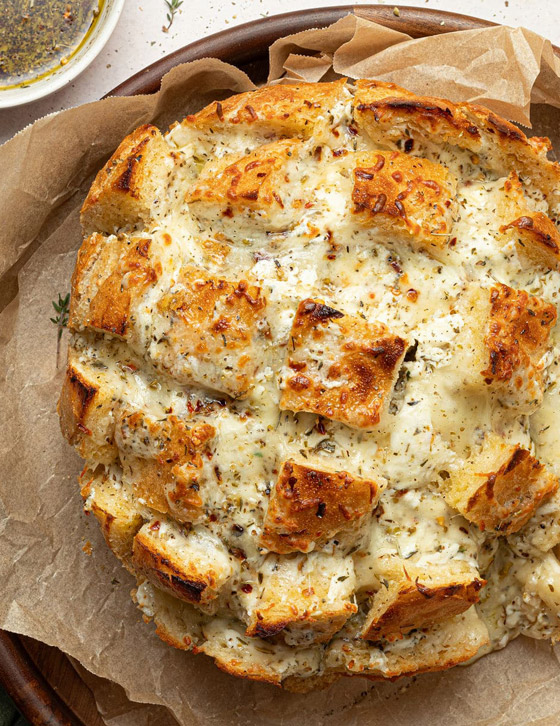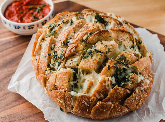 7. قدّموا خبز الثوم بالموزاريلا ساخناً.