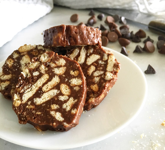 - 200-250 غرام بسكويت شاي سادة مقطع إلى قطع متوسطة.