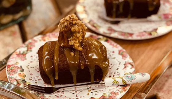 13. زينوا كيك التمر بصوص التوفي وبالمكسرات المجروشة.
