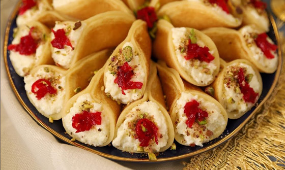قطايف عصافيري بالقشطة والرمان.. جربوا نكهة جديدة ومميزة لأطيب حلويات رمضان، القطايف بطعم القشطة والرمان الرائع. وقت الطهي: 60 دقيقة.. يكفي ل: 6 أشخاص.