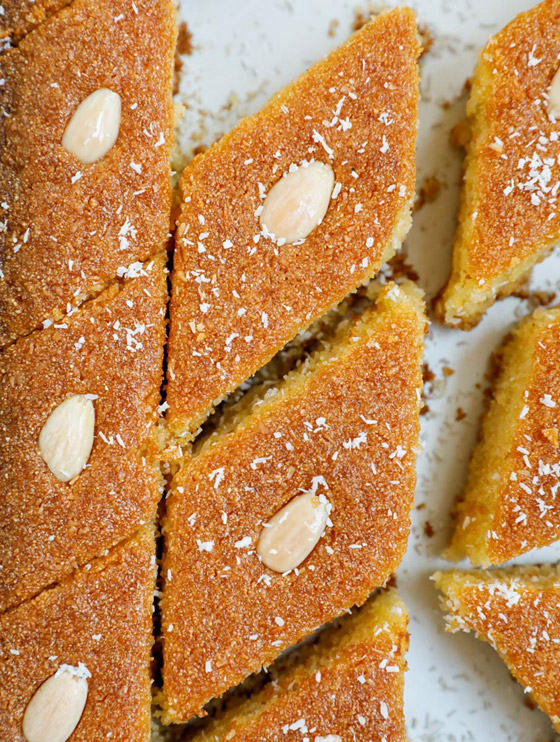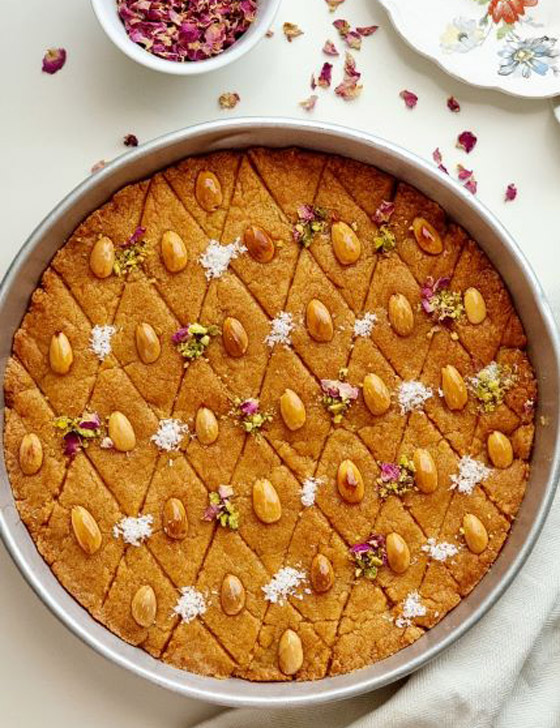 12. اخبزوا البسبوسة في الفرن لمدة 30-40 دقيقة أو حتى يصبح لونها ذهبياً.