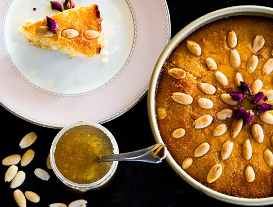 13. أخرجوا البسبوسة من الفرن وسقوها بالشيرة الباردة مباشرة.