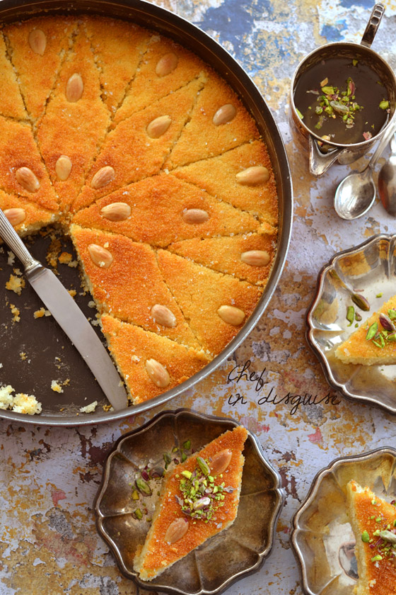 14. اتركوا البسبوسة تتشرب الشيرة جيداً وغطوها حتى تصبح طرية قبل تقطيعها وتقديمها.