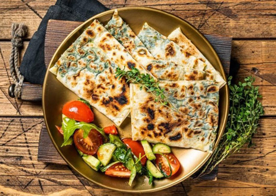 12. قدموا خبز البراتا باللبنة والخضار ساخناً.