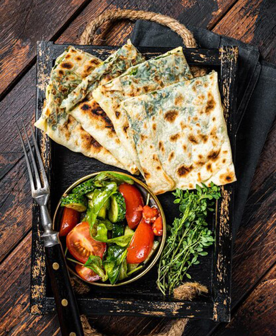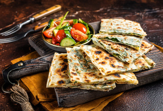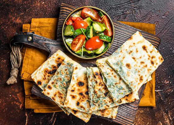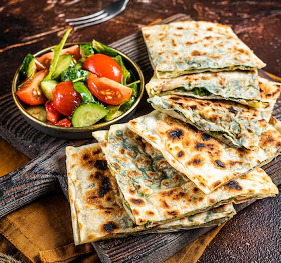 خبز البراتا باللبنة والخضار للسحور... خبز البراتا هو نوع من الخبز الهندي المسطح الذي يتميز بمذاقه اللذيذ وقوامه المقرمش، ويمكن حشوه بمكونات مختلفة. إليكم وصفة خبز البراتا باللبنة والخضار لوجبة سحور شهية. وقت الطهي: 60 دقيقة.. يكفي ل: 4 أشخاص.