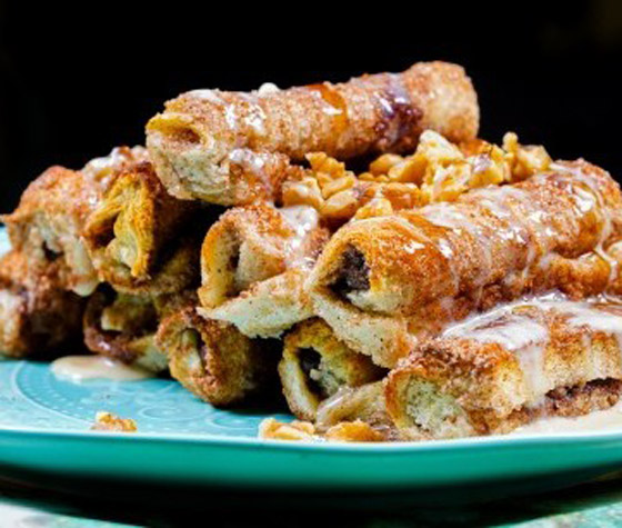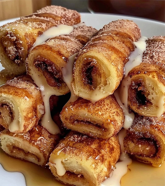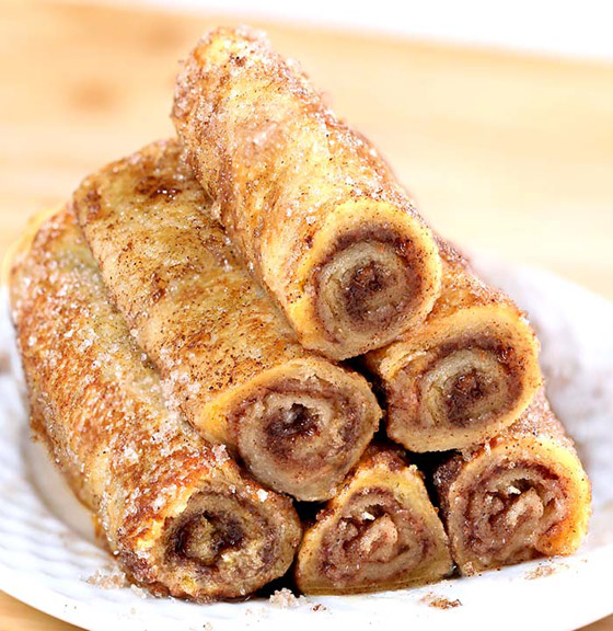 2. نغمس الرولات في الحليب ثم نمررها فوق السكر الممزوج بالقرفة، ثم ندخلها إلى الفرن حتى تتحمر.