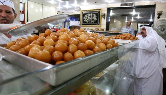 صائم كويتي يقف لشراء العوامة، التي تعتبر من الحلويات الشهيرة عربياً، والمقترنة بشهر الصوم.