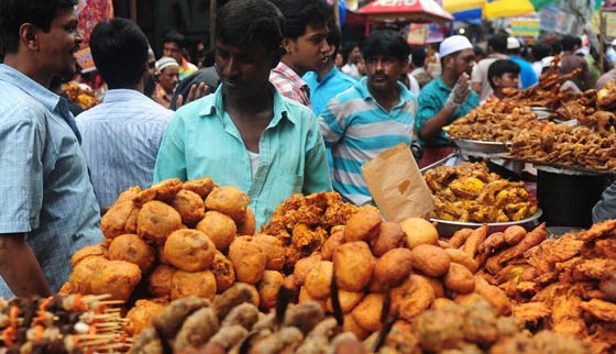 يجتمع الصائمون في إحدى الأسواق في العاصمة البنغلاديشية دكا لشراء المقبلات المقلية التي تمتاز بها مائدة الإفطار المحلية.