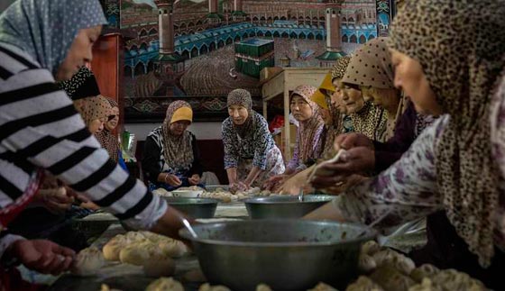 تجتمع النسوة لتحضير طعام الإفطار في هذا الجامع المخصص للنساء في سانغبو التابعة لمنطقة هينان الصينية. وهذا الجامع هو الوحيد المخصص للنساء في شمال غرب الصين. وتظهر النساء في الصورة وهنّ يحضرن وجبة الديم سام الصينية التقليدية، وهي عبارة عن صرر عجين تحتوي حشوة من اللحوم والأسماك وغيرها.