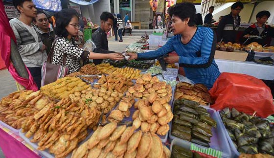 يجتمع الصائمون في سوق شعبي في العاصمة الإندونيسية جاكرتا لشراء المعجنات الشهيرة محلياً. وتتنوع أصناف المعجنات بين المالحة والحلوة.
