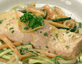 نتركه يغلظ قليلا ثم نضيفه على السمك والخضار ويزين بالبقدونس.