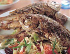يضاف الثوم والملح والفلفل الأسود. تضاف صلصة الطماطم، ثم يسكب باقي الزيت فوق سطح السمك. يغطى الطاجن ويوضع في الفرن الى أن ينضج السمك، يمكن إضافة القليل من الماء أثناء النضج. يقدم الطاجن ساخنا مع تزيينه بالبقدونس.