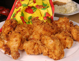 5. تقلى الاجنحة بزيت غزير وبعد القلي تصفى الأجنحة من الزيت علي الورق الخاص بذلك