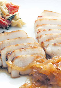 وزّعي تلك الشرائح على الأطباق الفردية وغطّيها بالصلصة. قدّمي الطبق مباشرة.