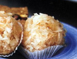 3. الكرات في جوز الهند ثم تزين بالبندق .