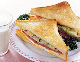 2. يوضع في كل خبزة شريحة من الجبن ثم تغطى بقطعة أخرى من الخبز على شكل سندويتشات ثم تقطع على شكل مثلثات.