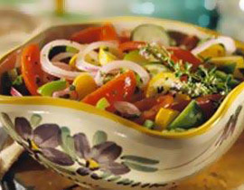 1. يشوى الفلفل على النار و يقشر و يقطع إلى مربعات متوسطة الحجم .