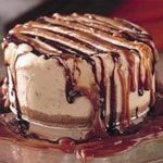 2. يسكب في القالب الخاص بالتشيز كيك ثم يسكب الايسكريم فوق طبقة البسكويت ويساوى السطح.