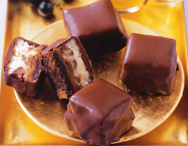 ثم نضيف الكريمة الحامضة ونخلط ببطئ ثم يصب الخليط فوق الصينية المجهزة وتدخل الفرن لمدة 35 الى 40 دقيقة او الى ان تستوي تماما تترك لتبرد ثم تقطع الى مربعات بعدها تذوب الشكولاته وتصب فوق حبات الشيز كيك او تغمس القطع داخل الشكولاته بالشوكة كي تنزل كل الزوائد وَ تترك لتبرد وتحفظ مبردة وتُقدم مع القهـوة