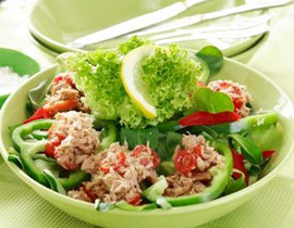 نفرغ التونة في وعاء نقطع الفليفلات شرائح ونضغها في الوعاء نقطع البروكلي أو القرنيبيط ونضيفهم نضع ذرة حسب الرغبة نضيف المايونيز والخيار بعد تقطيعه ثم نخلطهم بإضافة الحامض وبالهناء والشفاء