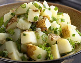 - اطبخي قطع لحم الغنم في فرن ساخن حتى تتحمر، وفي انتظار ذلك اسلقي البطاطا في ماء مملح لمدة عشر دقائق، ثم صفيها جيداً من الماء وقطعيها لقطع متوسطة.