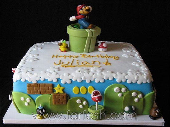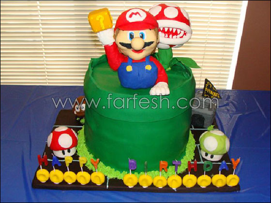 اذا مللتم من كعك اعياد ميلاد الاطفال ومن الشخصيات المرسومة او المنحوتة على الكعك، مثل باربي او سبايدير مان او ملعب كرة قدم.. نقدم لكم مجموعة صور رائعة لفكرة جديدة، وهي لعبة ماريو الشهيرة !