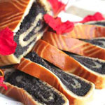 8- توزع المربى على العجينة ثم الحشوة ثم تلف على شكل رول