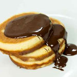 نخلط المواد الجافة ونخلط المواد السائلة ماعدا الزبدة ثم نضيفهم للمواد الجافة ونضيف الزبدة ويجب ان يكون الخليط اخف من خليط الكيك ثم يقسم الخليط الي ثلاث اقسام اضفت للاول ملعقتين كاكاو بودرة وللثاني زبيب (كشمش) والثالث يترك سادة نضع مقلاة تيفال غير قابلة للالتصاق وتمسح بالقليل من الزبدة ونضع القليل من الخليط لحتى تظهر الفقاعات نقلبها وهكذا حتى ننتهي من كل الخليط ويقدم مع المربى او العسل.