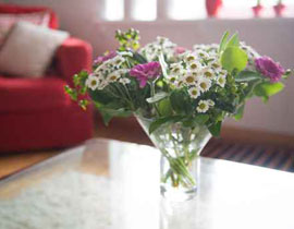 - باقة من الزهور الطبيعية هي دائماً إضافة منعشة للمكان، اختاري الزهور ذات الألوان المشرقة والقوية وليس بالضرورة أن يكون العدد كبيراً، زهرتان أو ثلاث بألوانها القوية.. تكفي لجعل البيت يبدو أفضل. ضعيها في فازات شفافة على إطار الشباك.