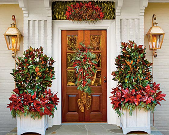 لا تنسي ان مدخل منزلك هو اول خطوات الاجواء الاحتفالية وبهجة الاعياد.. استمتعي بتزيين المدخل لنثر البهجة طوال الموسم ولاسعاد ضيوفك الذين سيتوافدون على منزلك الدافئ.. استخدمي باقات منسقة طبيعية من نباتات الكريسماس مثل بنت القنصل مع الاوراق الخضراء ووحدات الصنوبر.