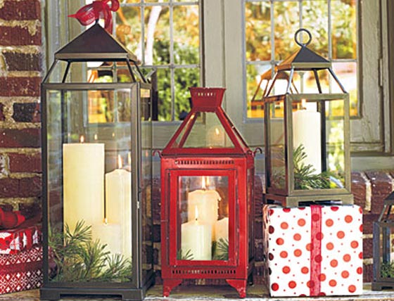 استخدمي وحدات الاضاءة والشموع ومصابيع الكريسماس والعام الجديد..قطع اكسسوار سهلة يمكن الحصول عليها بدون تكلفة كبيرة ويكفي نثرها في الاركان ومدخل المنزل مع الشرائط الحمراء والفضية لتحصلي على بهجة الاعياد.