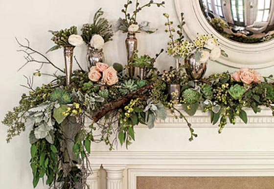 انثري النباتات الشتوية الجميلة في منزلك لتحصلي على اجواء الاعياد والعام الجديد.. استعيني بباقات من رؤوس الصنوبر ونسقيها مع افرع من اوراق الشتاء الخضراء و ورد الموسم ..دعي النباتات تتعانق مع بعض الاكسسوارات اللامعة الانيقة وزيني بها الاركان، الكونسول، طاولات القهوة، واعلى المدفأة.