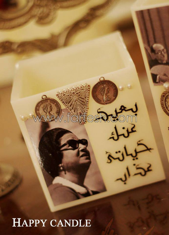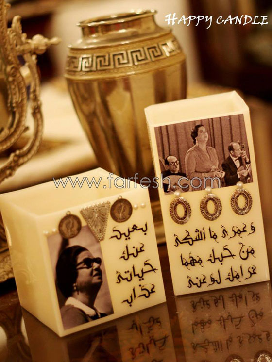كما اعتدنا مع إقتراب أعياد الحب تنتشر الهدايا والقلوب الحمراء التى ارتبطت بهذه المناسبة. أما بالنسبة لعالم الشموع قررت مصممة الشموع غادة كريم ان تضيف لمجموعة تصميمات الشموع القلوب الحمراء مجموعة تصميمات جديدة وبأفكار مختلفة عن طريق طرح مجموعة شموع "ام كلثوم" يكتب عليها بالنحاس المطلي ذهب أشهر جمل الحب التي غنتها ام كلثوم لتكون تذكارا يلائم مناسبة الفالنتين.